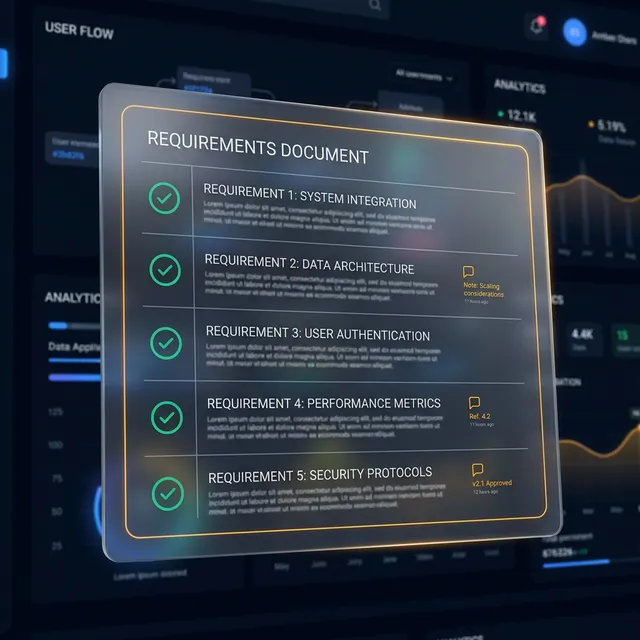 Unsere KI prüft deine Anforderungen auf Definitions-Lücken und versteckte Implementierungsrisiken. Du erhältst einen Bericht über die Lücken und eine erste Preis-Indikation.